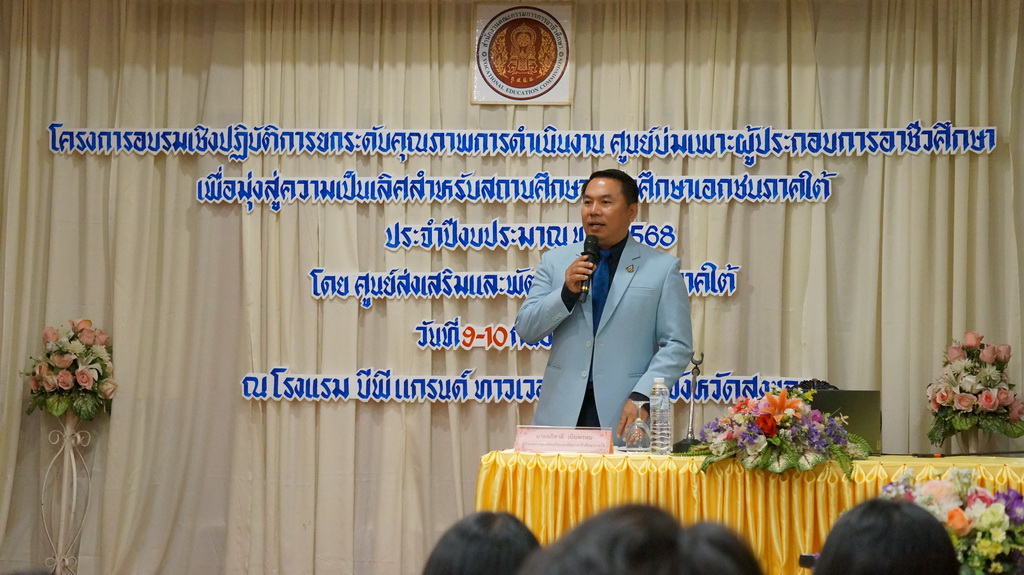 โครงการอบรมเชิงปฏิบัติการยกระดับคุณภาพการดำเนินงานศูนย์บ่มเพาะผู้ประกอบการอาชีวศึกษา เพื่อมุ่งสู่ความเป็นเลิศสำหรับสถานศึกษาอาชีวศึกษาเอกชนภาคใต้ ประจำปีงบประมาณ พ.ศ. 2568